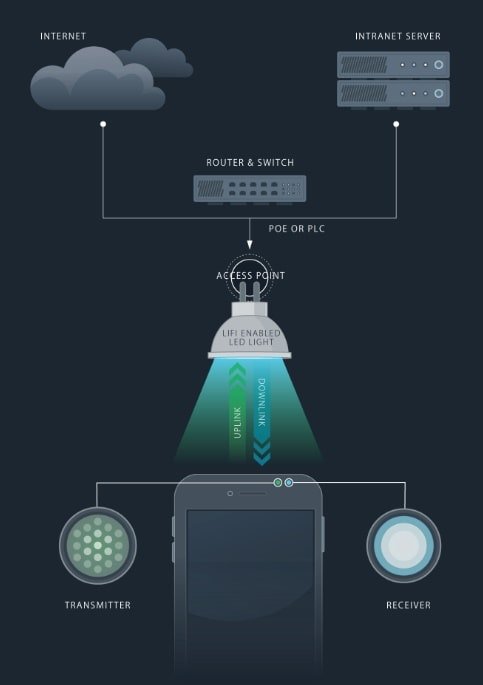 تُحول إشارات البيانات الرقمية إلى تغيرات دقيقة في شدة إضاءة المصابيح، يتم استقبالها بواسطة فوتوديودات حساسة، تُترجم هذه التغيرات إلى معلومات قابلة للقراءة في الأجهزة الذكية. وتتم العملية بسرعة بالغة، لدرجة لا يمكن للعين البشرية ملاحظتها، لكنها تمكّن من نقل البيانات بسرعات تصل نظريًا إلى أكثر من 200 جيجابت/ثانية، وهي سرعة تفوق بكثير أفضل شبكات Wi-Fi المتوفرة اليوم.