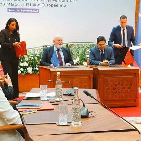 عرف حفل توقيع هذه الشراكة حضور السيد ناصر بوريطة وزير الخارجية والتعاون الإفريقي والمغاربة المقيمين بالخارج، والسيد رياض مزور وزير الصناعة والتجارة، والسيد محمد صديقي وزير الفلاحة والصيد البحري والتنمية القروية والمياه والغابات من الجانب المغربي، والسيد فرانس تيمرمانس نائب الرئيس التنفيذي لمفوضية الاتحاد الأوروبي المسؤول عن المناخ من الجانب الأوروبي.
